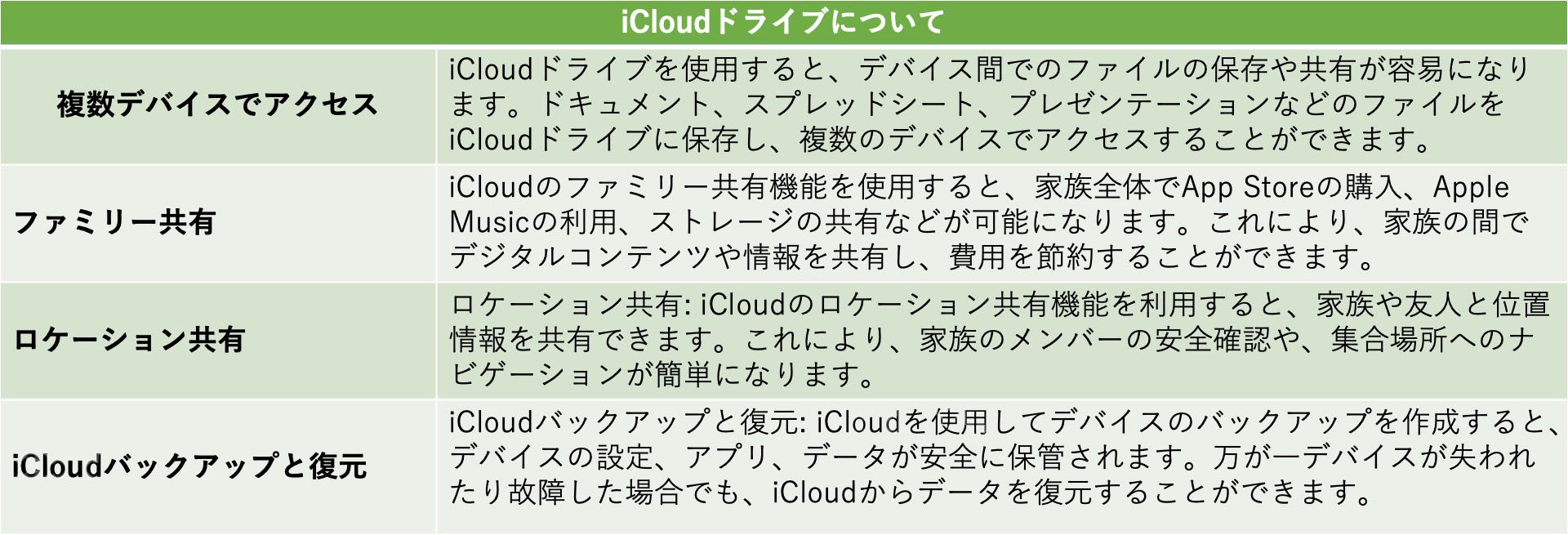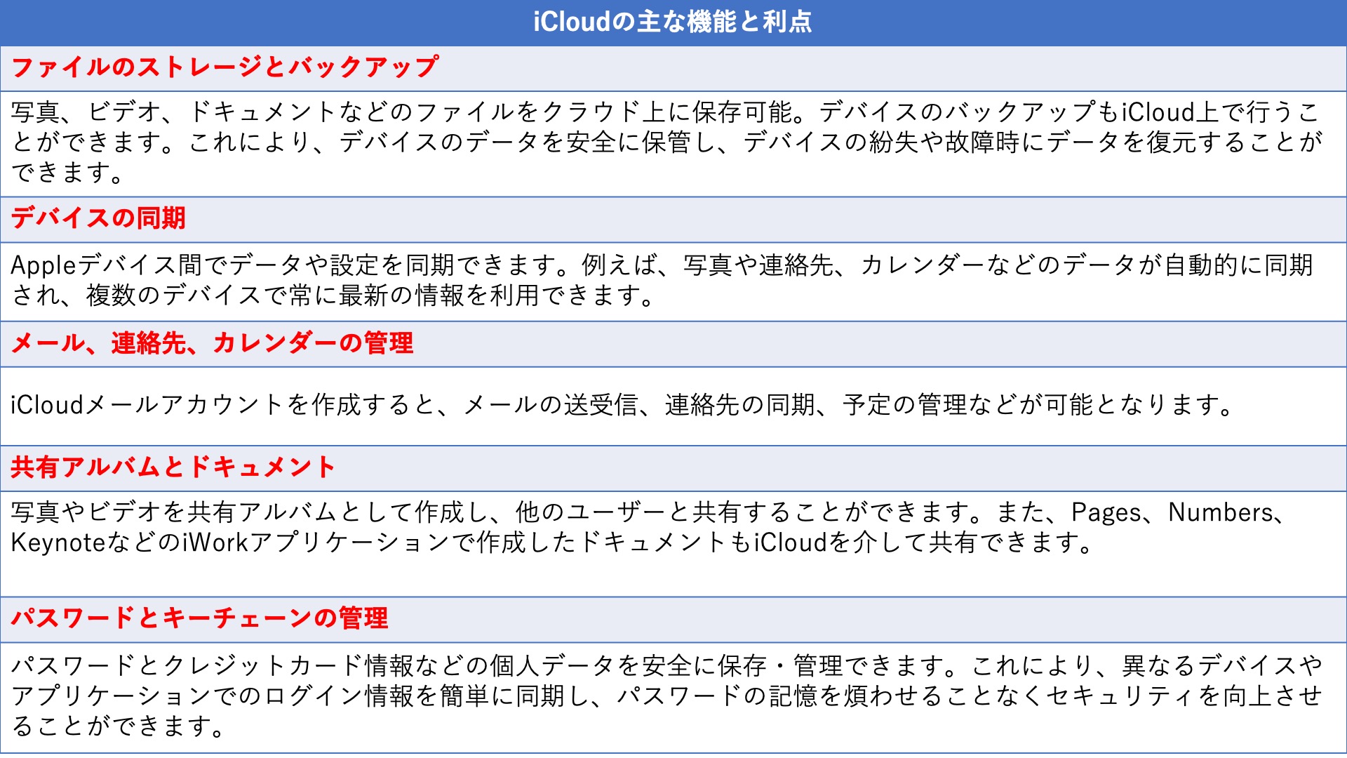 以下に、iCloudの主な機能と利点をいくつか紹介します。
