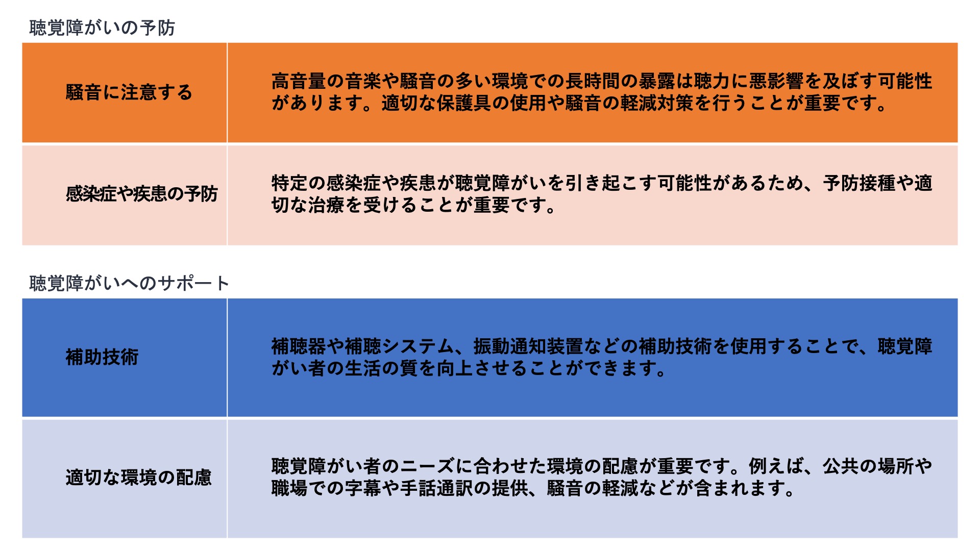 聴覚障がいについては、個人の状況や要件に応じた専門の医療専門家やサポートグループへの相談が重要です。これにより、適切な診断とサポートが提供され、聴覚障がい者が充実した生活を送ることができるでしょう。
