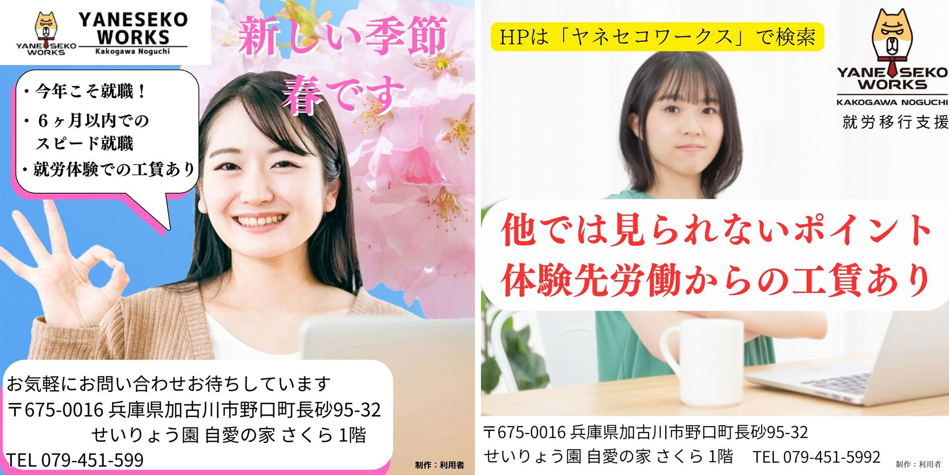 下記のデザインは2つともがCanvaを使用しています。背景の写真と会社ロゴ以外はCanvaでの制作となります。